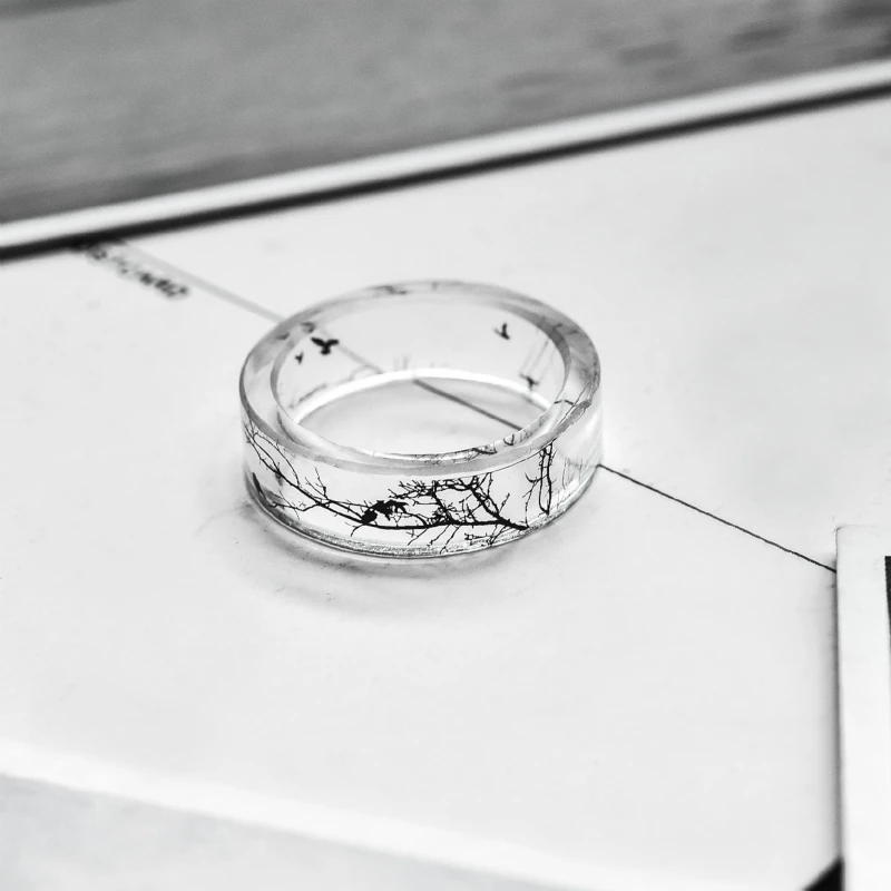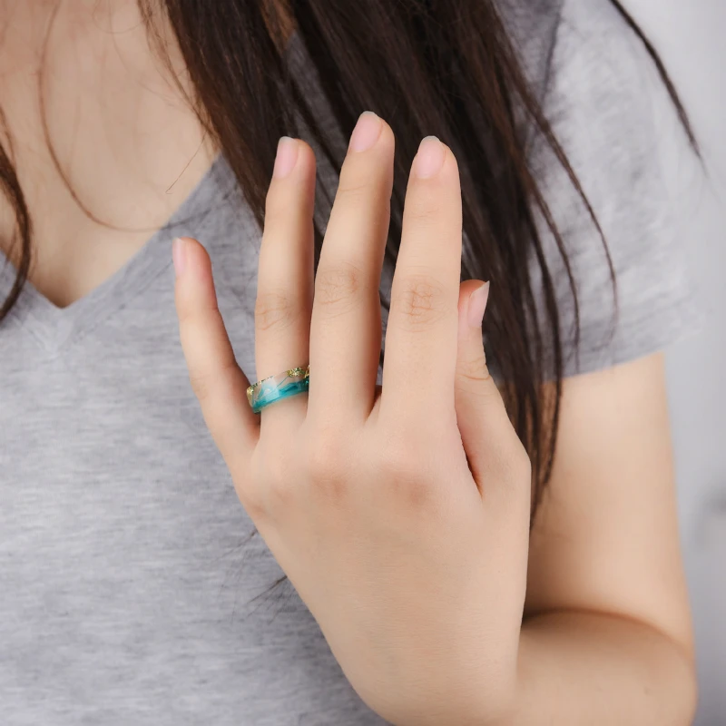 Нейтральная прозрачная деревянная смола кольцо зеленый мох прозрачный кошечка ветка лучший подарок