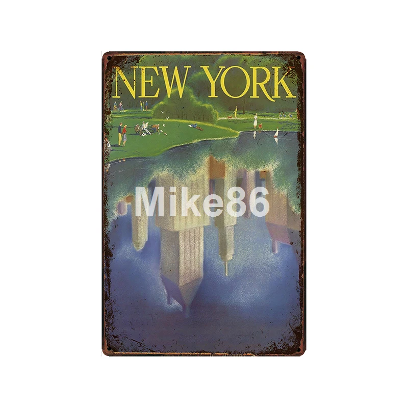[Mike86] Дорожные Металлические плакаты Рим Нью-Йорк настенные тарелки винтажный жестяной знак Ретро сувениры праздничный подарок FG-249