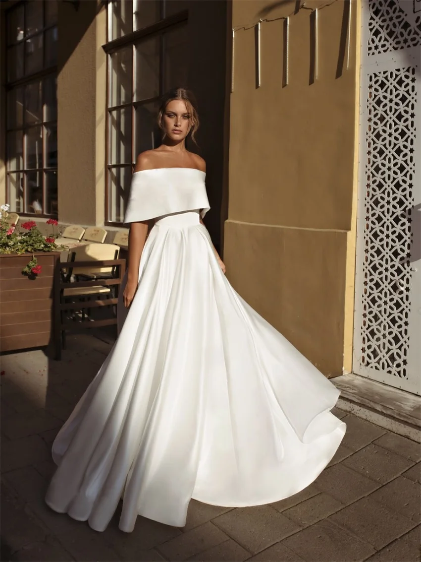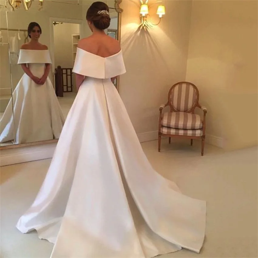 Простые белые атласные свадебные платья NUOXIFANG, свадебные платья с открытыми плечами, свадебные платья