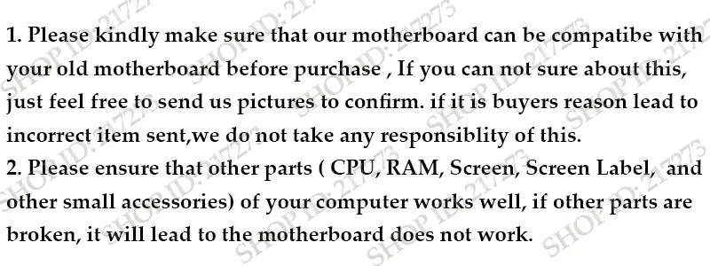 1: материнская плата такая же, как на фотографиях.2: полный тест перед отправкой.3: предоставляем 2 месяца гарантии. (старт после получения посылка)