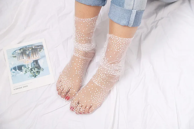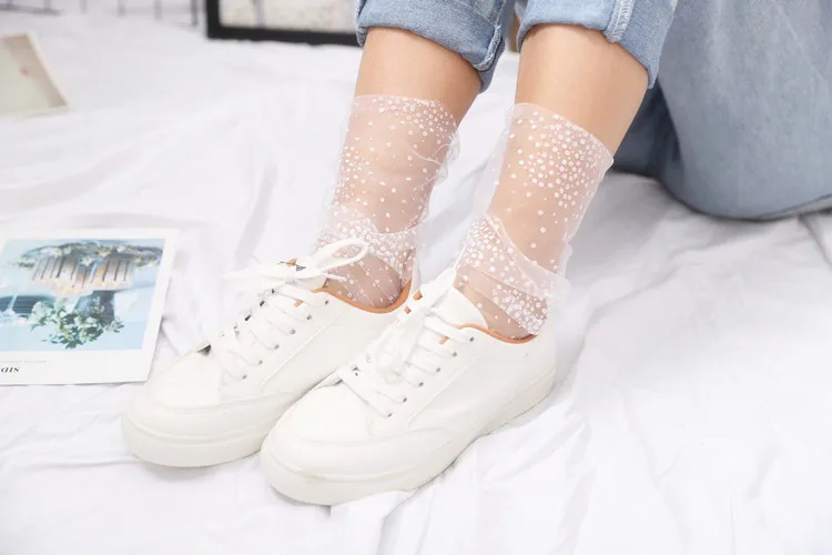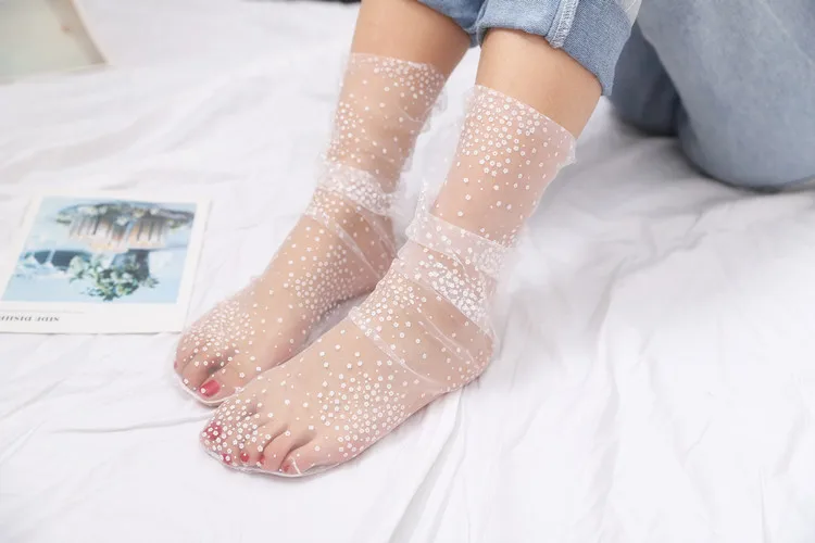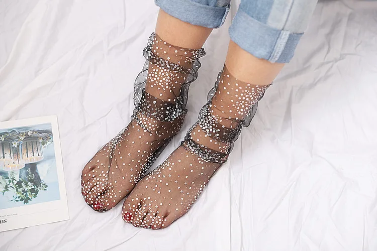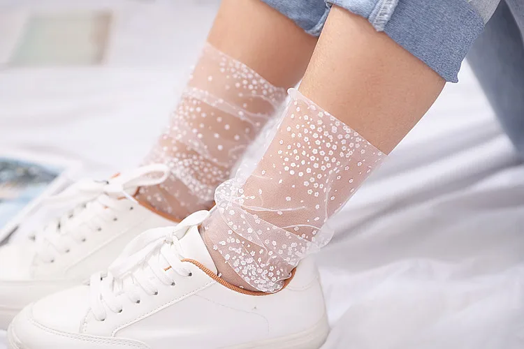 Носки женские, прозрачные, сетчатые, тонкие, с кружевом