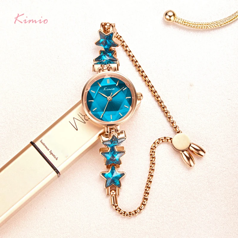 Часы kimio женские наручные с браслетом с синими звездами, простые брендовые водонепроницаемые с маленьким циферблатом, 2019