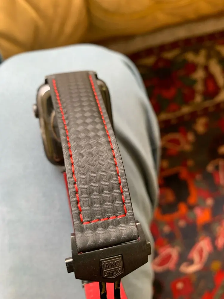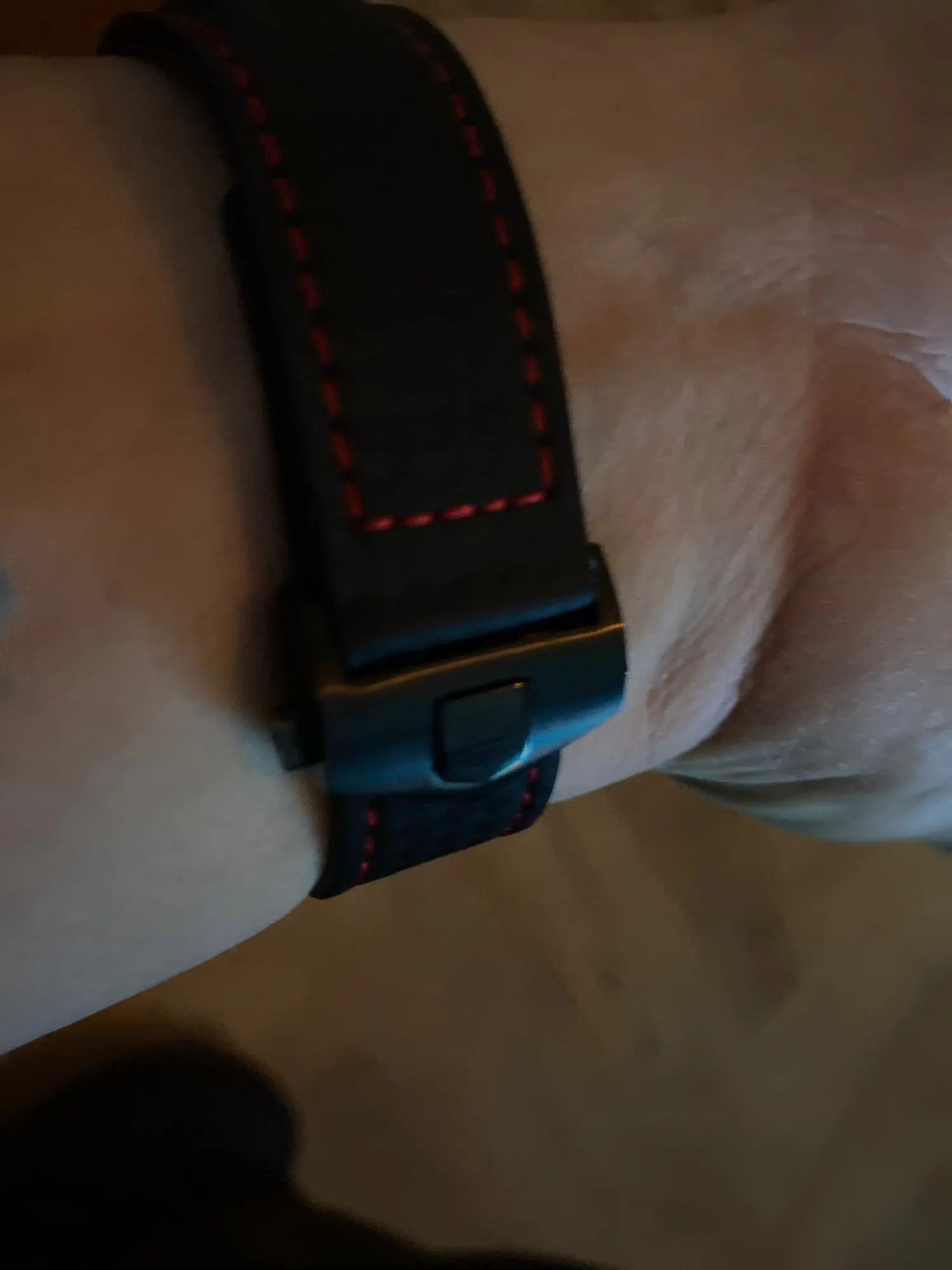 Боковой браслет из натуральной кожи. Хорошая толщина. Хорошее качество. Внешняя сторона не из кожи. Я не думаю, что браслет изготовлен из кожи. Углеродная застежка хорошего качества. Доставка товара очень быстрая. Моя большая нижняя сторона остается презентацией продукта.