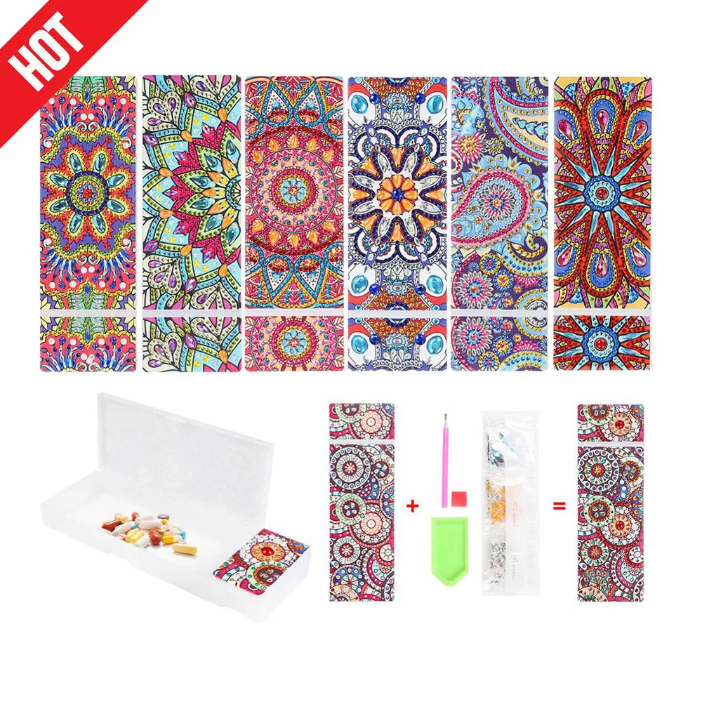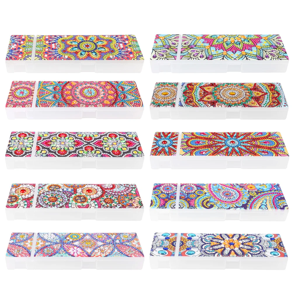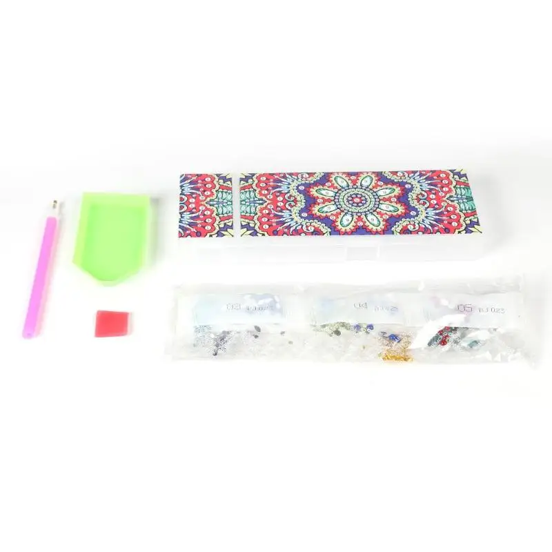 Пенал для алмазной вышивки сделай сам в форме мандалы, 2 ячейки, шкатулка для хранения канцелярских принадлежностей, детский подарок