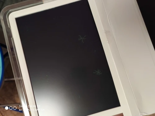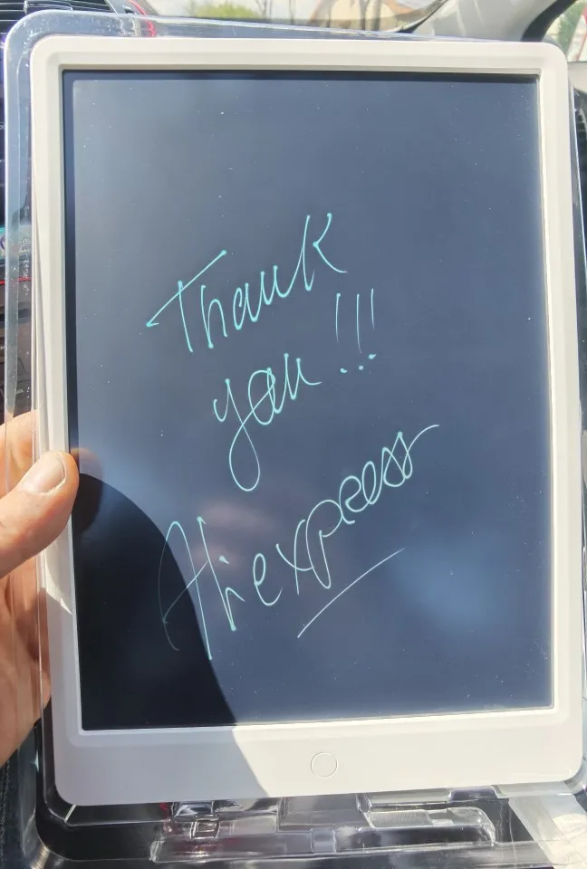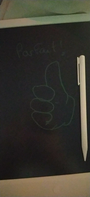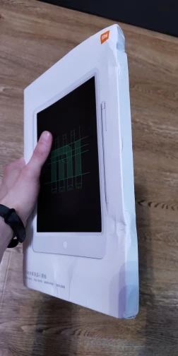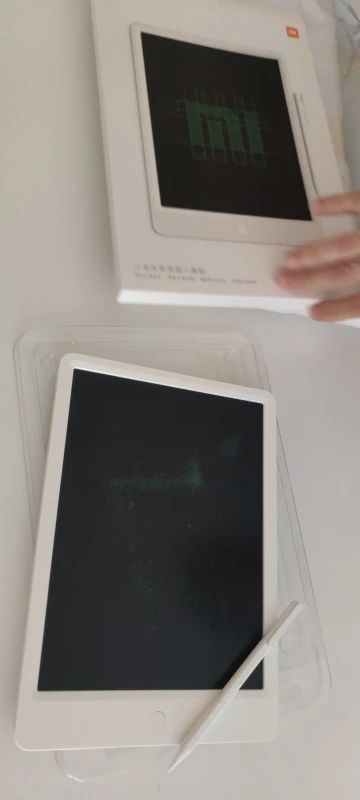 Планшет прибыл идеально защищенным, хотя в коробке видны некоторые морщины. Работает отлично, надпись очень мягкая и ничего не весит. Как описано, у них есть кнопка, чтобы не стереть написанную случайно, и карандаш прилипает к верхней части магнитом.