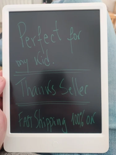 Delivery 3,5 weeks 13.03-06.04.2021. No damages on pakage or product, very accurate. Producti itselves is really nice, even for this price! It have magnet on right side, to stick pen to a bord. You can block screen to protect you drawing. Line thickness depends on pressure of pen. Your hands doesn’t leave any lines, but you can draw with wood stick or any hard thing (so the ring on a finger can draw also :D). - You can see fingerprints on screen. I recomend both - seller and product.