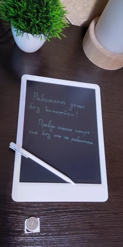 Очень понравился планшет! Выглядит отлично, очень лёгкий, матовый экран, на котором все видно. У меня на нам, если честно, даже почерк выглядит гораздо красивее, чем на бумаге ) Стилус скользит по экрану очень легко. Нажимать практически не приходиться. + к этому, рисовать можно и без батарейки. батарейка нужна только для стирания, как я понял. а если так, то жить она будет долго (я надеюсь). В целом все очень круто. Единственное из минусов - упаковка сильно мятая. Как подарок в такой упаковке уже не подаришь. Но это мелочи, я считаю. Главное, что все работает и сам планшет выглядит отменно! Да, и дошло до Тулы всего за 6-7 дней! Очень быстрая доставка.