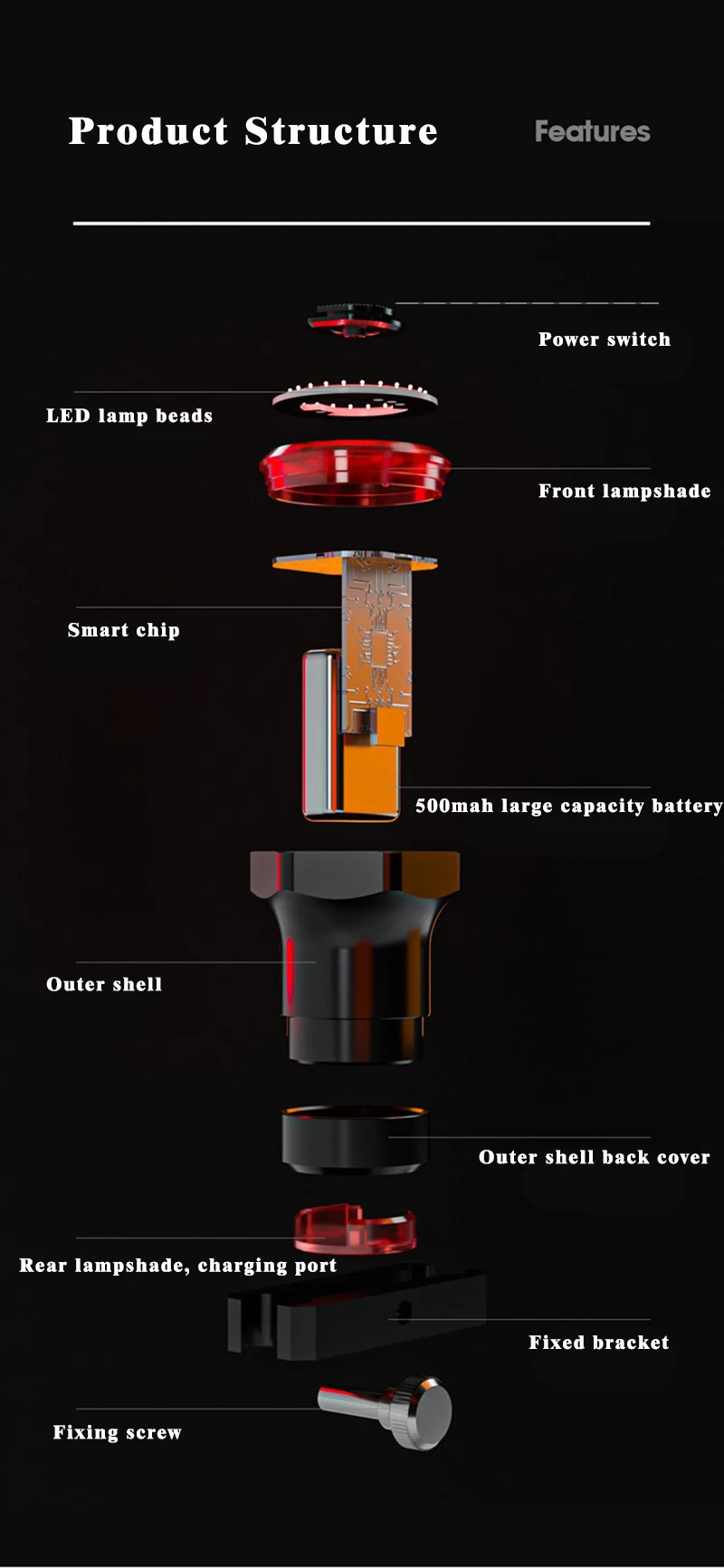 Велосипедный фонарь, Интеллектуальный задний фонарь с датчиком торм...