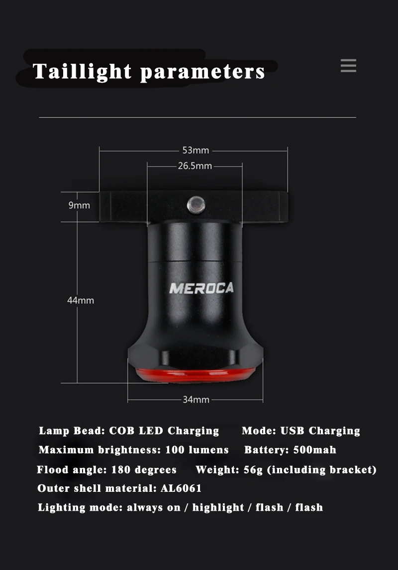 Задний светильник для велосипеда MEROCA, заряжаемый, водонепроницае...
