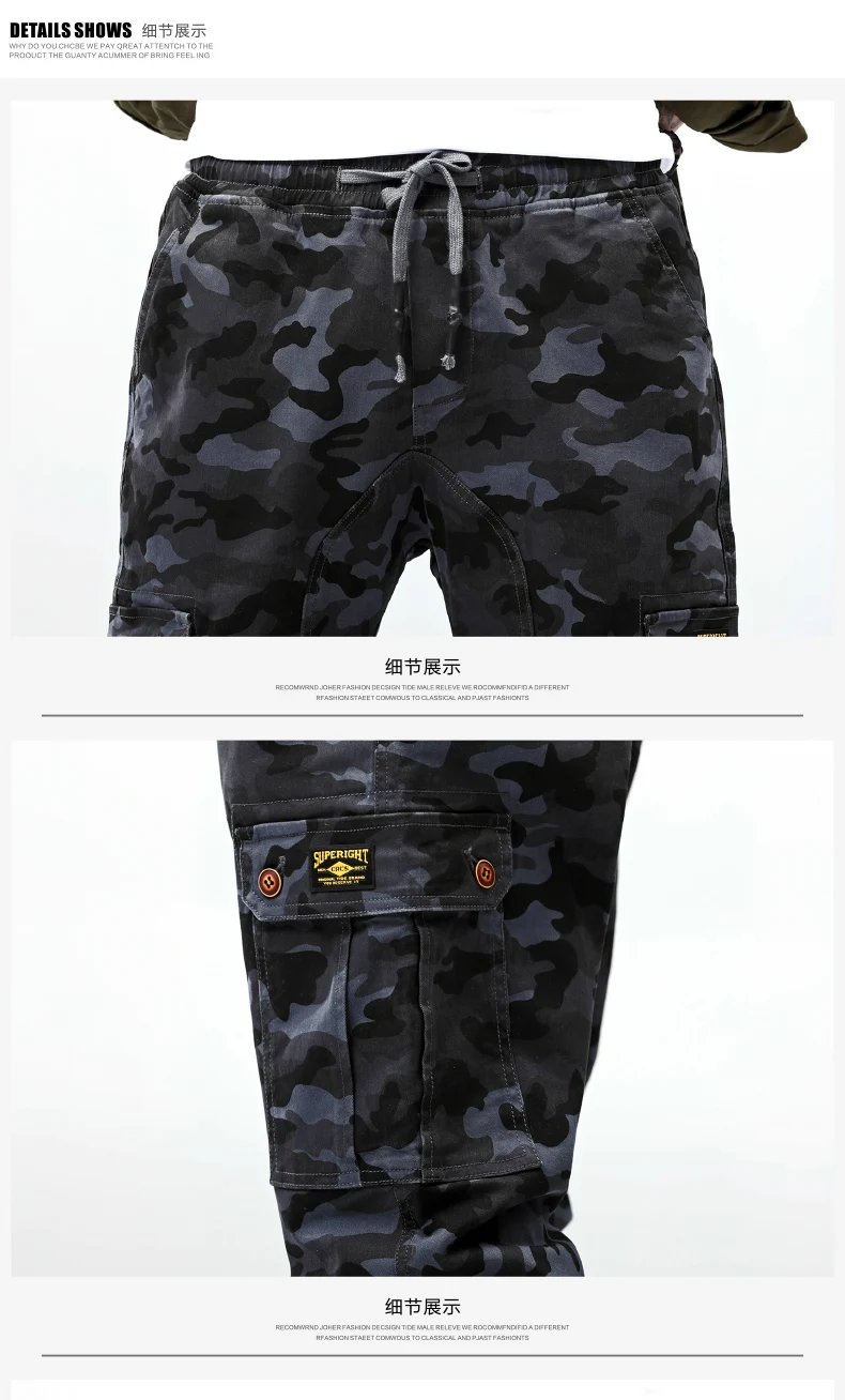 Мужские брюки-карандаш, камуфляжные свободные штаны в стиле милитар...