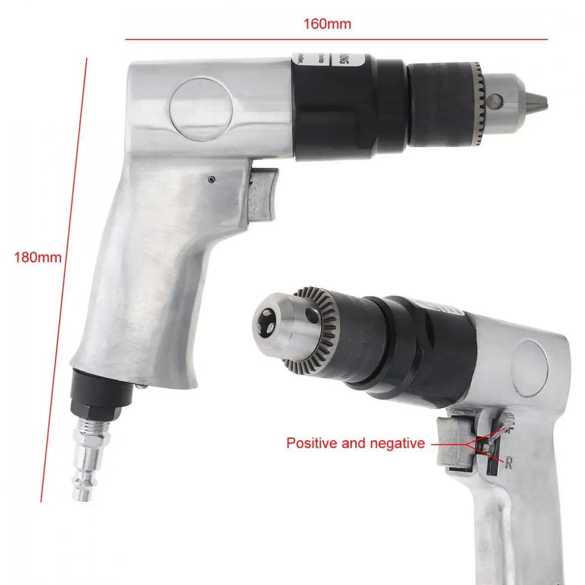 Особенности:-Дизайн пистолета, ручная работа Гибкая и удобная.-Высокая эффективность, высокоточное сверление.-Регулируемый самоблокирующийся патрон, регулируемый зажимной механизм.-Реверсивный переключатель, удобный и практичный.-Конструкция воздушного фильтра, эффективная фильтрация примесей.-1/4 дюймов держатель бит 1,5-10 мм вместимость, вы можете обрезать бит, отвертка, Шлифовальная головка, нож для резьбы, стальная щетка, наждачной бумагой.-Высокое качество, легко носить, свободно контролировать скорость, легко выравнивать центр, высокая интенсивность безопасности работы.-Область применения для металлических, пластиковых продуктов мощного бурения, резьбы и других операций.