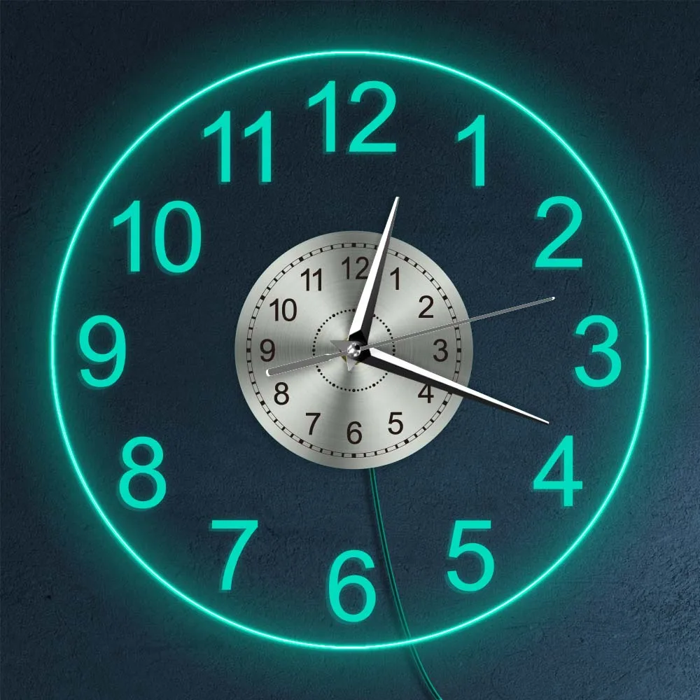 Современные акриловые настенные часы со светодиодный Ной подсветкой, прикроватный ночник для спальни, настенные часы, светятся в темноте, разноцветные светодиодные украшения