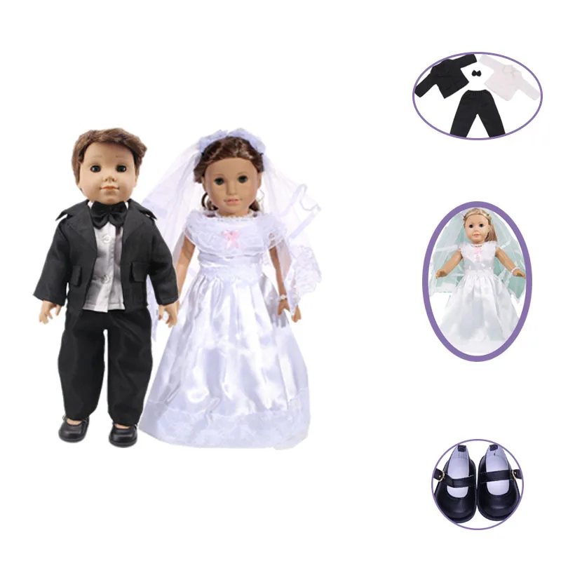 Свадебные платья, мужские костюмы, женская свадебная одежда, 18 дюймов, 43 см, для кукол новорожденных, подарок на праздник для детей
