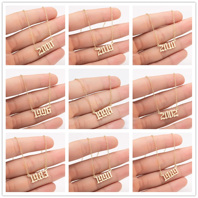 Ожерелье из нержавеющей стали с цифрами для женщин и девушек, 1990,...