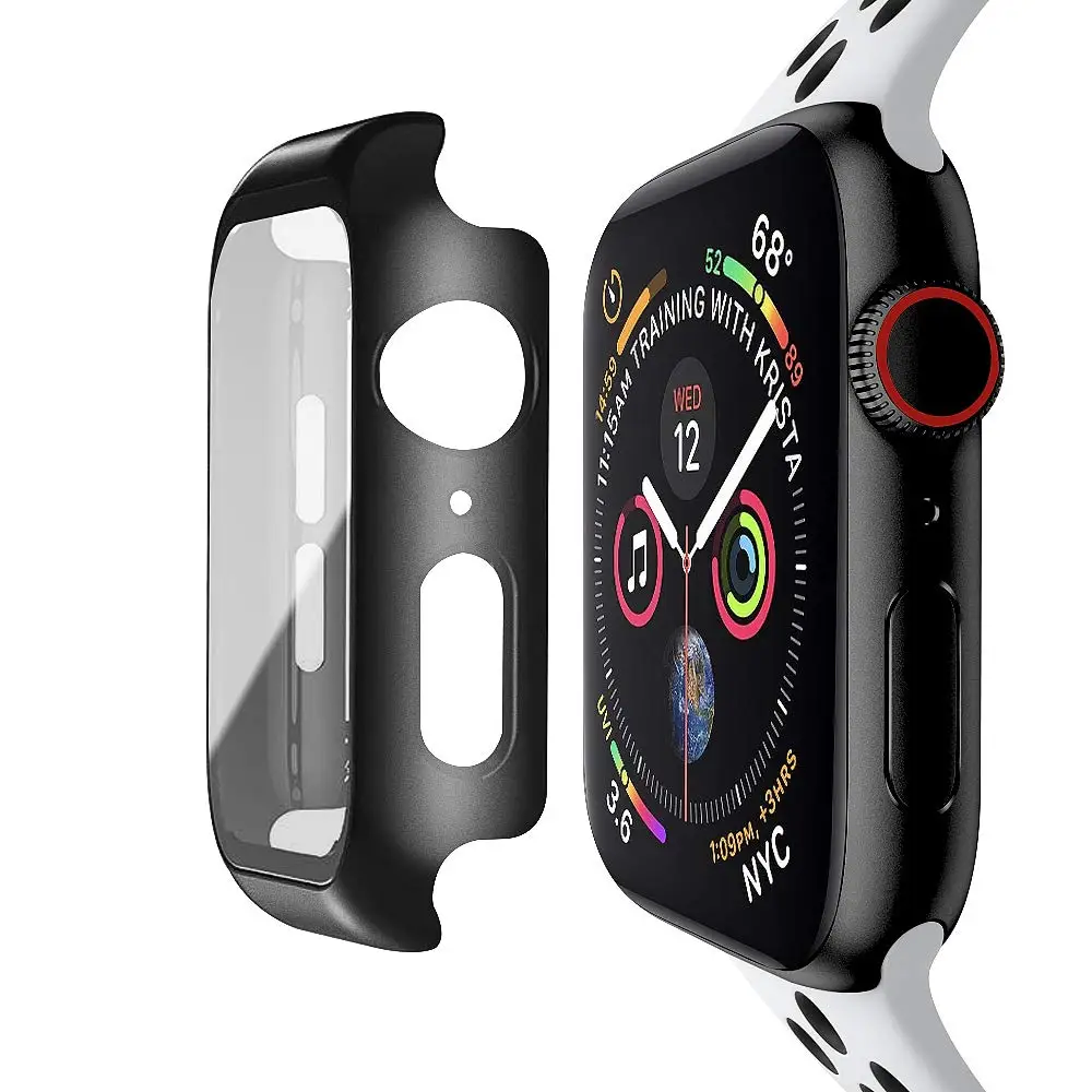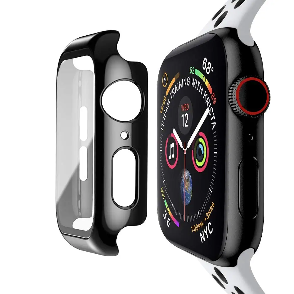 Для Apple Watch 44 мм 42 мм чехол со встроенным закаленным стеклом протектор экрана полное покрытие жесткий iWatch чехол для серии 4