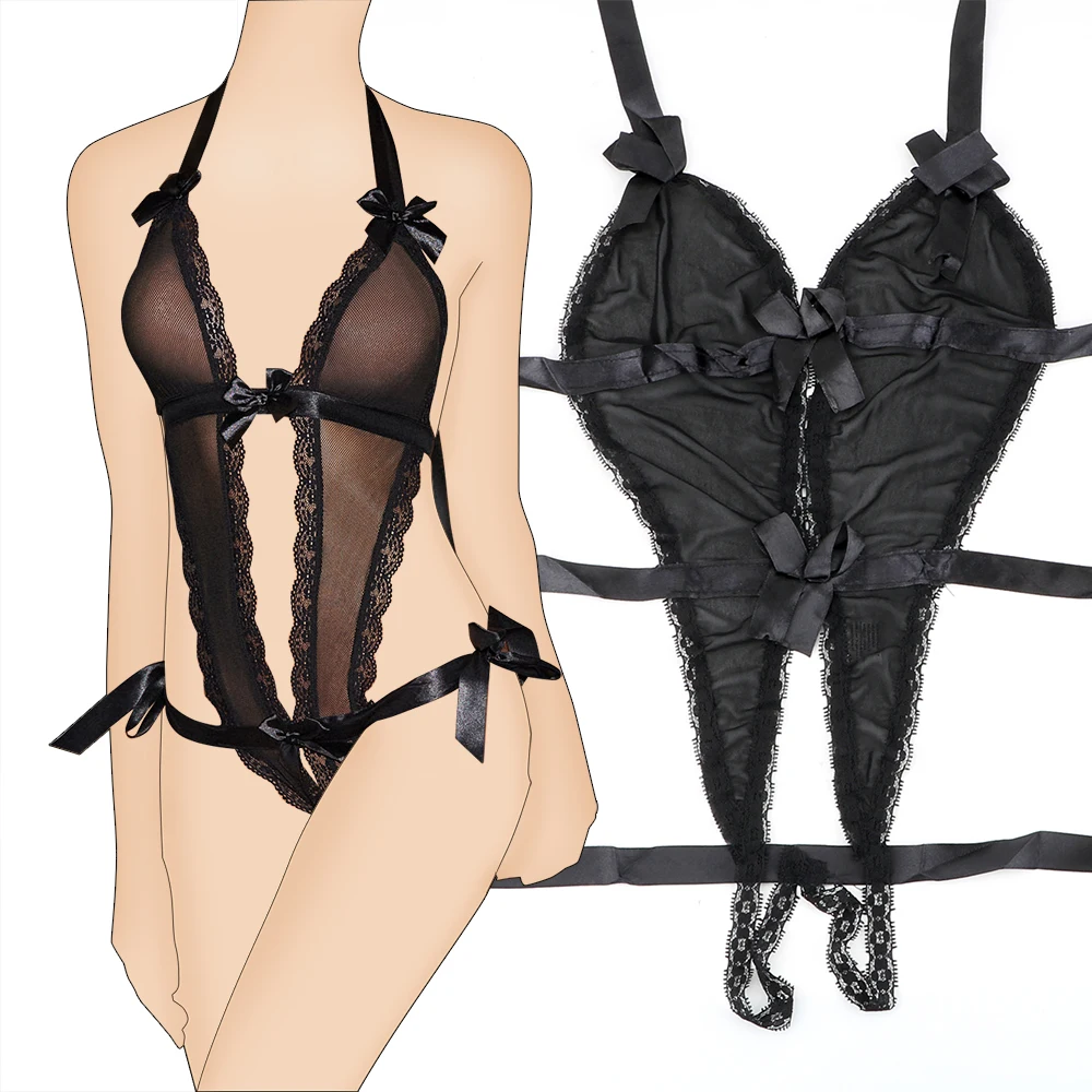 Прозрачная Пижама комбинезон с V-образным вырезом, кружевное сексуальное нижнее белье, соблазнительное Эротическое платье с открытой промежностью, интимные игрушки для женщин