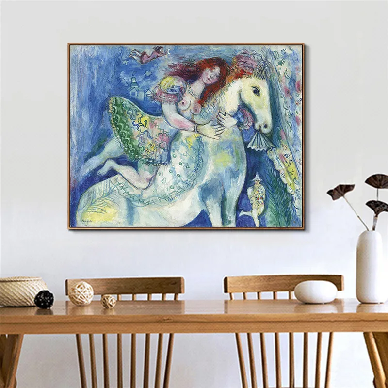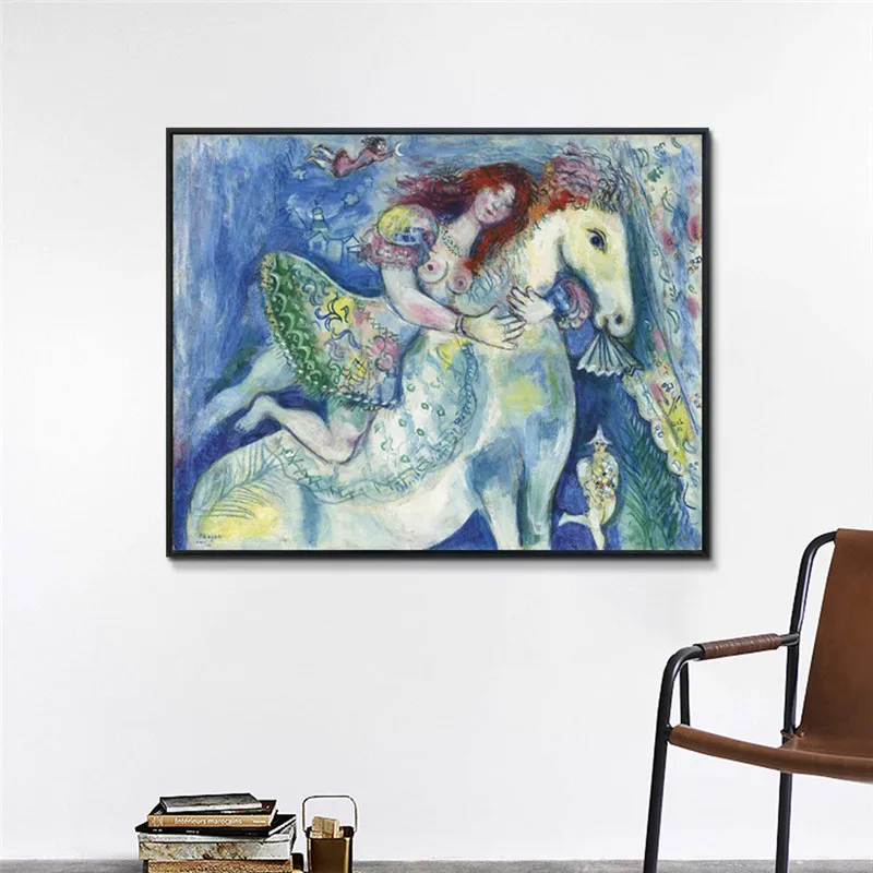 Картина на холсте Chagall, абстрактная девушка на лошади, домашний декор, настенные художественные картины, акварель для гостиной, модульный постер