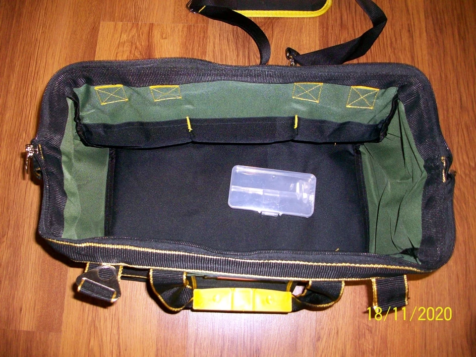 Посылка с сумкой получена, добиралась долго, но это не критично. Материал сумки прочный, плотный и действительно непромокаемый. Сумка вместительная, имеет шесть внутренних и восемь наружных карманов. Очень удобна для хранения и переноски инструмента и необходимых в хозяйстве и ремонт мелочей. Продавец вложил в сумку небольшой бонус - контейнер для мелких деталей. Приятно. Рекомендую продавца и его товар. Буду покупать ещё. Всем добра.