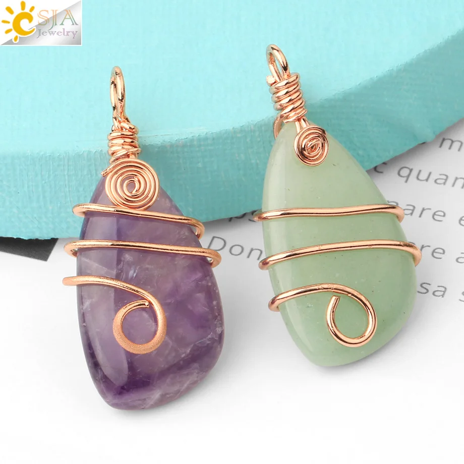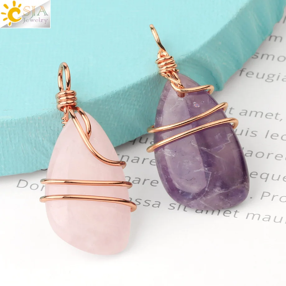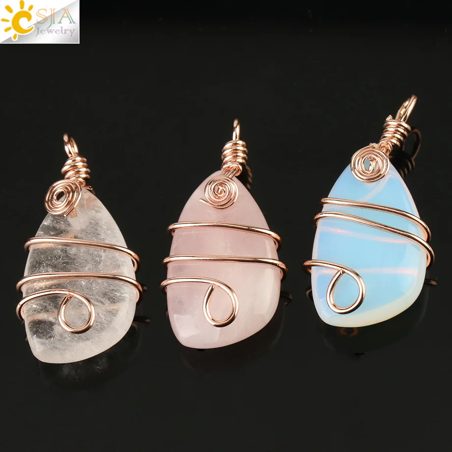 Женское Ожерелье из натурального камня CSJA, ожерелье из медной проволоки, ожерелье с неровным кристаллом розового золота, кварцевые ювелирные изделия G196