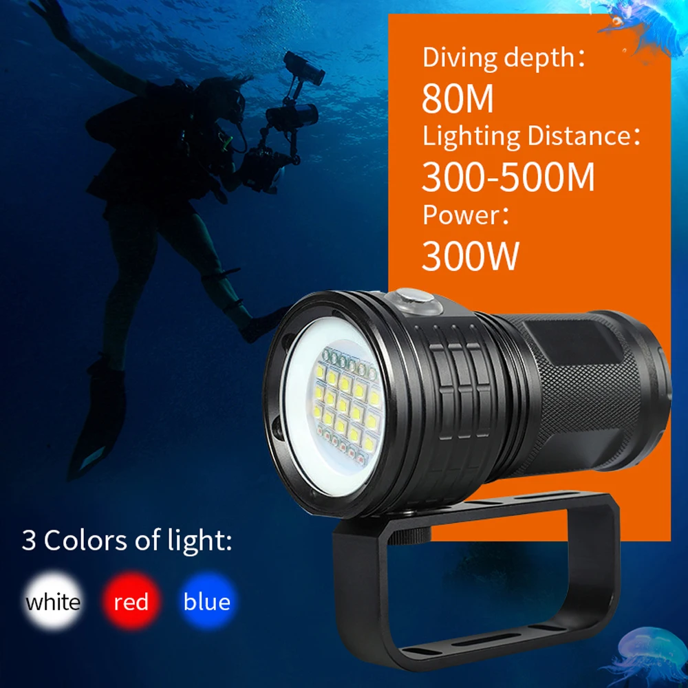 Ультраяркий светильник фонарик для погружения с аквалангом, водонепроницаемый подводный фонарь для погружения с аквалангом, белый, синий, красный, Лампа 500, 18650 м