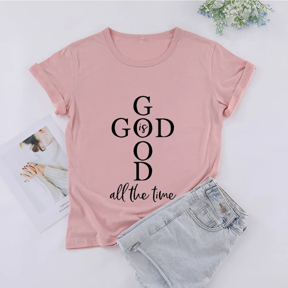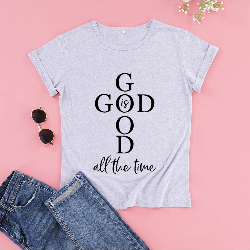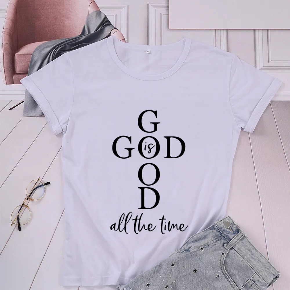 Футболка с надписью христианский Бог-это хорошо все время, Иисус Иан, забавная черная хлопковая футболка с коротким рукавом, топы-футболки для женщин и девочек