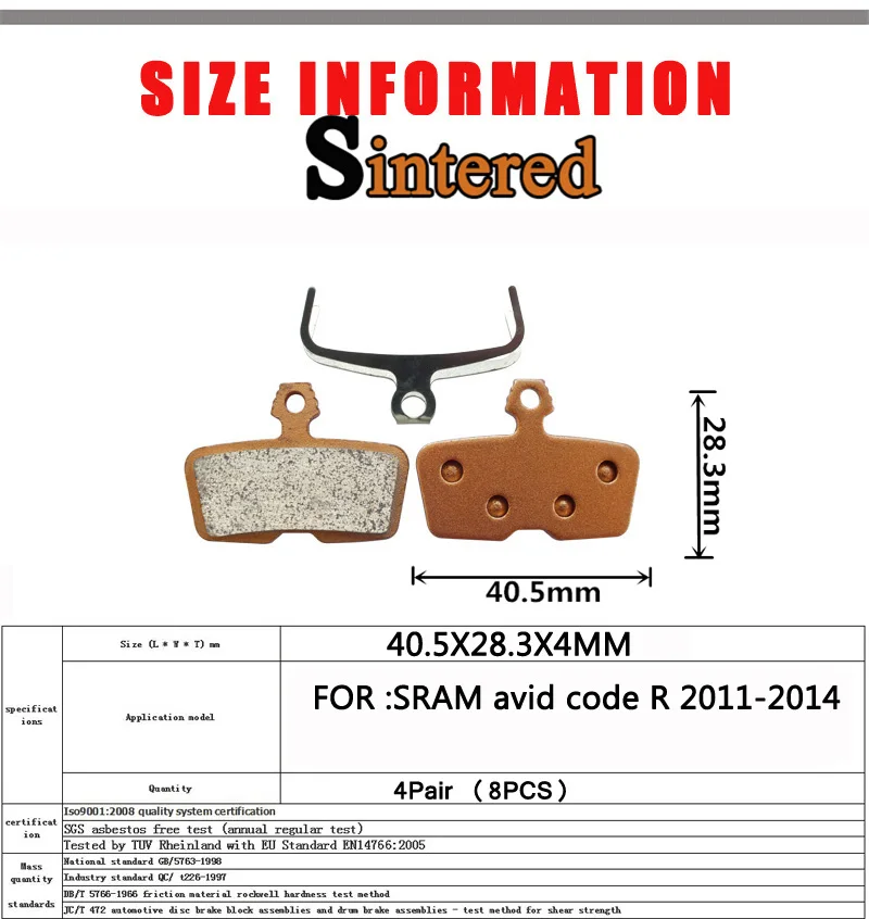 4 пары горы MTB велосипеда спеченный велосипедный диск Тормозные колодки для SRAM AVID Код R 2011-2014 Запчасти аксессуары