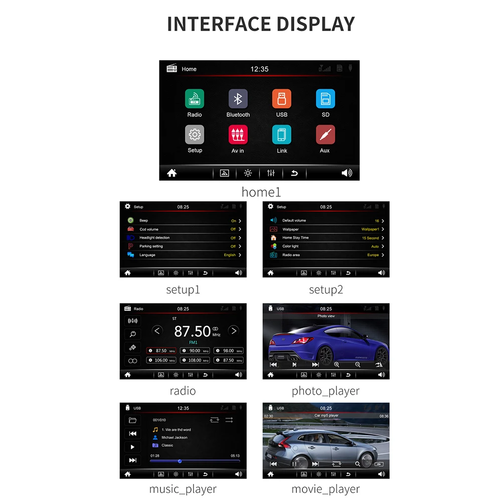 Характеристики: Модель: N6 Напряжение: 12 В Тип: 7-дюймовый автомобильный MP5-плеер Double DIN ОС: WINCE Программное решение: Allwinne C200S Шаблон экрана: 7-дюймовый TFT Размер экрана: 7 дюймов Разрешение экрана: 800*480 Размер панели: около 178*100 мм/7,01*3,94" Светодиодный: переменные цветные огни Размер цветной коробки: около 200*113*170 мм/7,87*4,45*6,69 дюйма (крафт-коробка) Глубина хоста: 65 мм/2,56 дюйма Вес машины: 680 г Зеркальная ссылка: поддержка, для Android / iPhone GPS-навигация: нет Радиодиапазон: FM Радиочип: QN8035 Языки: английский, китайский, индонезийский, немецкий, русский, испанский, французский, итальянский, тайский, арабский, украинский, португальский, чешский Мощность: 60 Вт Рабочая температура: -10 ~ 60 ° c Перевернутое изображение: Поддержка Функция обратного вызова тормоза: Поддержка Управление рулевым колесом: Поддержка Название Bluetooth: CAR-BT Чип усилителя: TDA7388 Радиочастота: FM 87,5 ~ 108 МГц Видеовыход: Поддержка Одновременный дисплей с двумя экранами: не поддерживается Интегрированная офлайн-карта: нет Беспроводной Wi-Fi: нет Слот для карты TF: Да Слот для карты GPS: нет USB: USB 2,0 Кнопка сброса: Да Кнопка: Физическая кнопка Введение в Терминал RCA: 4 канала аудиовыхода, 2 канала видеовыхода Передний аудиовход AUX: Да Сменный логотип: Да Поддерживаемые Аудиоформаты: MP3 / WMA / WAV / APE / FLAC Поддерживаемые видеоформаты: AVI / MP4 / RM / RMVB / MKV / 3GP Поддерживаемые форматы изображений: JPG Заводской пароль: нет