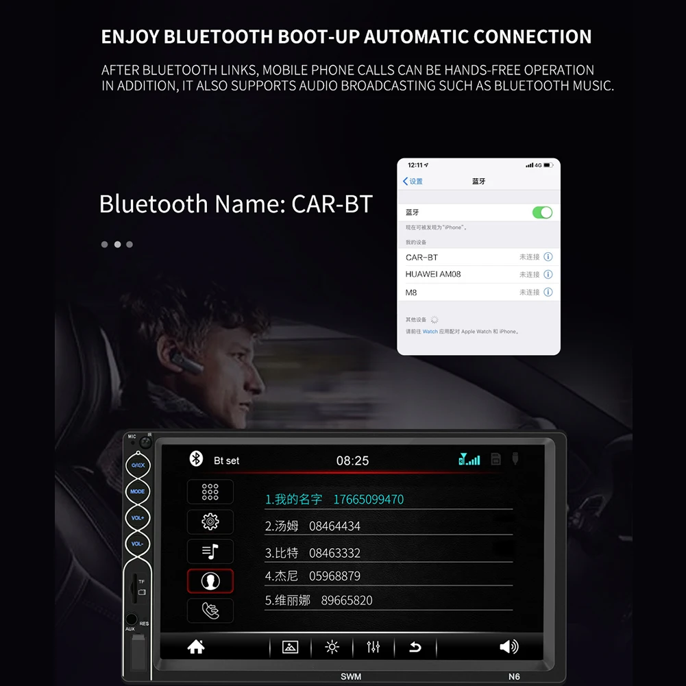7-дюймовый Bluetooth стерео радио сенсорный экран плеер 2 Din HD Mp5 плеер с поддержкой IOS Android для подключения телефона к зеркалу