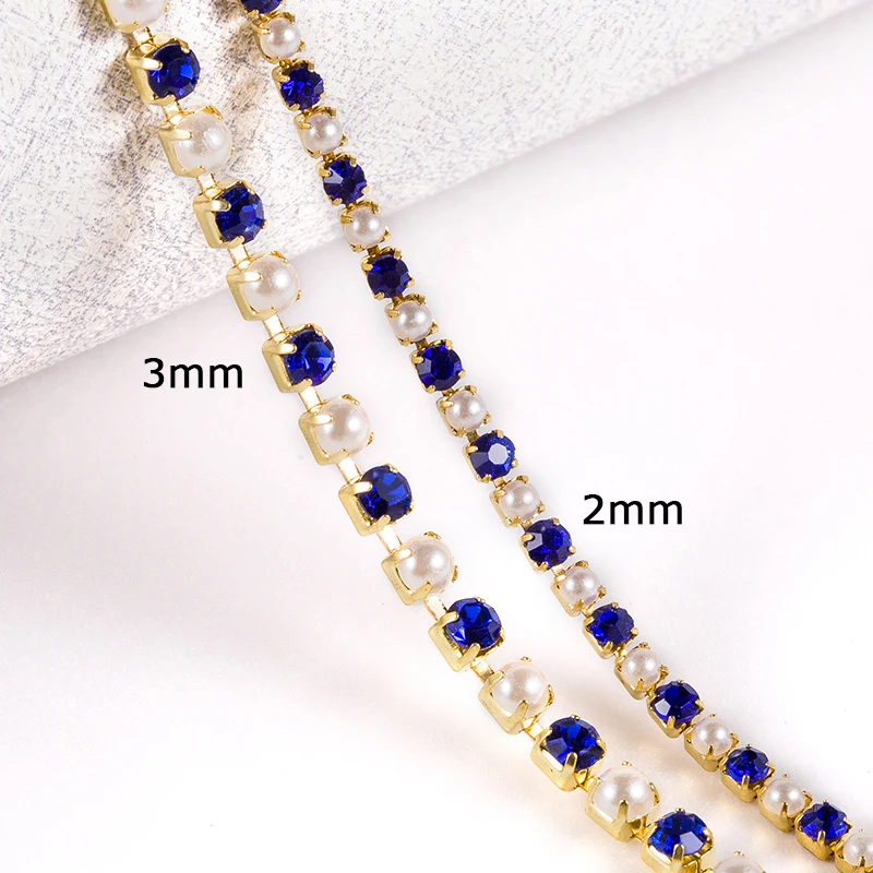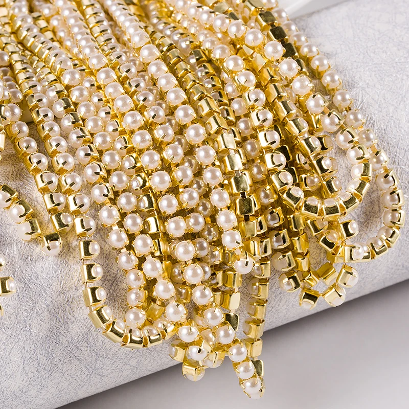 210 ярдов 3 мм стразы из АБС жемчуга и стекла Серебрянаязолотая цепочка для отделки Стразы цепочка для свадебной аппликации платья Аксессуары для рукоделия