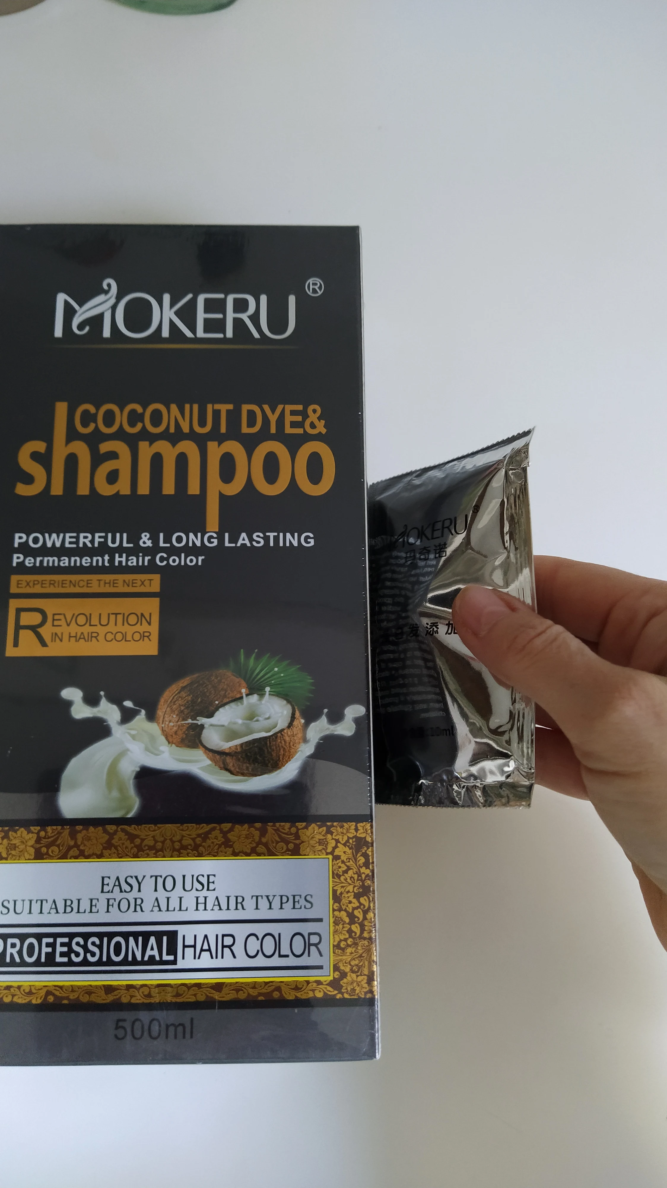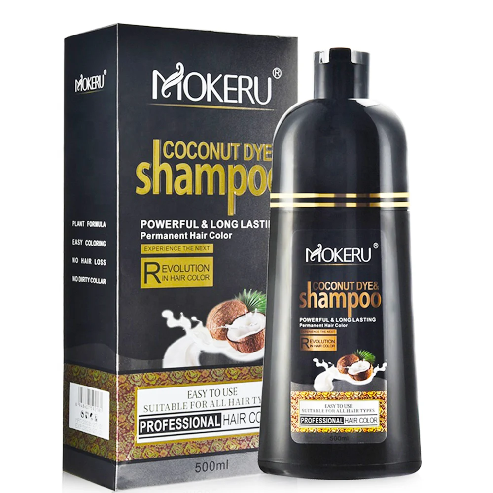Натуральная Органическая эссенция для кокосового масла Mokeru, шампунь с черной краской для покрытия седых волос, шампунь с перманентной краской для волос, 500 мл