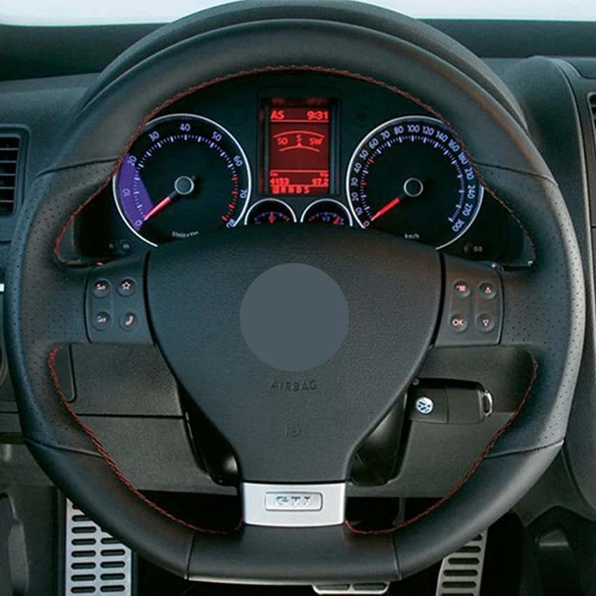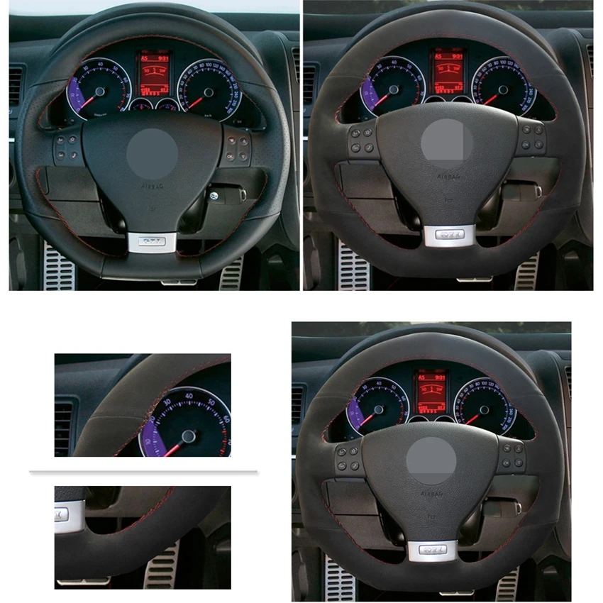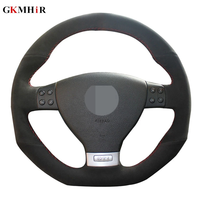 DIY сшитый вручную черный замшевый кожаный чехол рулевого колеса автомобиля для Volkswagen Golf 5 Mk5 GTI VW Golf 5 R32 Passat R GT 2005