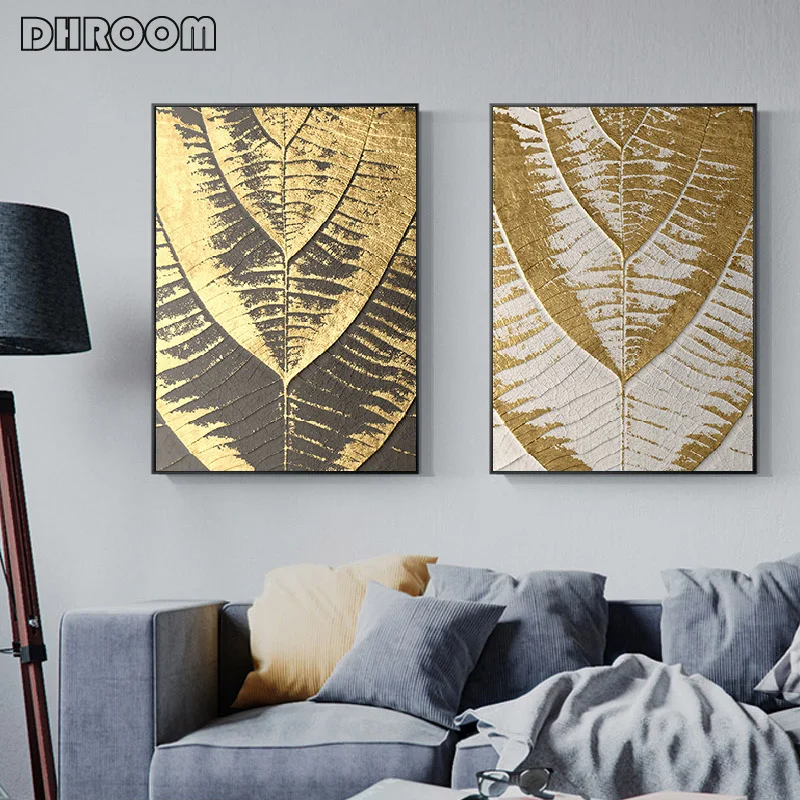 Золотая современная абстрактная Настенная картина с изображением листьев и растений, настенный плакат, Скандинавская Картина на холсте, картина для украшения гостиной, Декор