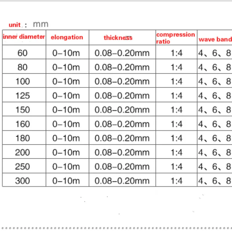 Внутренний диаметр: 60 мм/80 мм/100 мм/125 мм/150 мм/160 мм/180 мм/200 мм