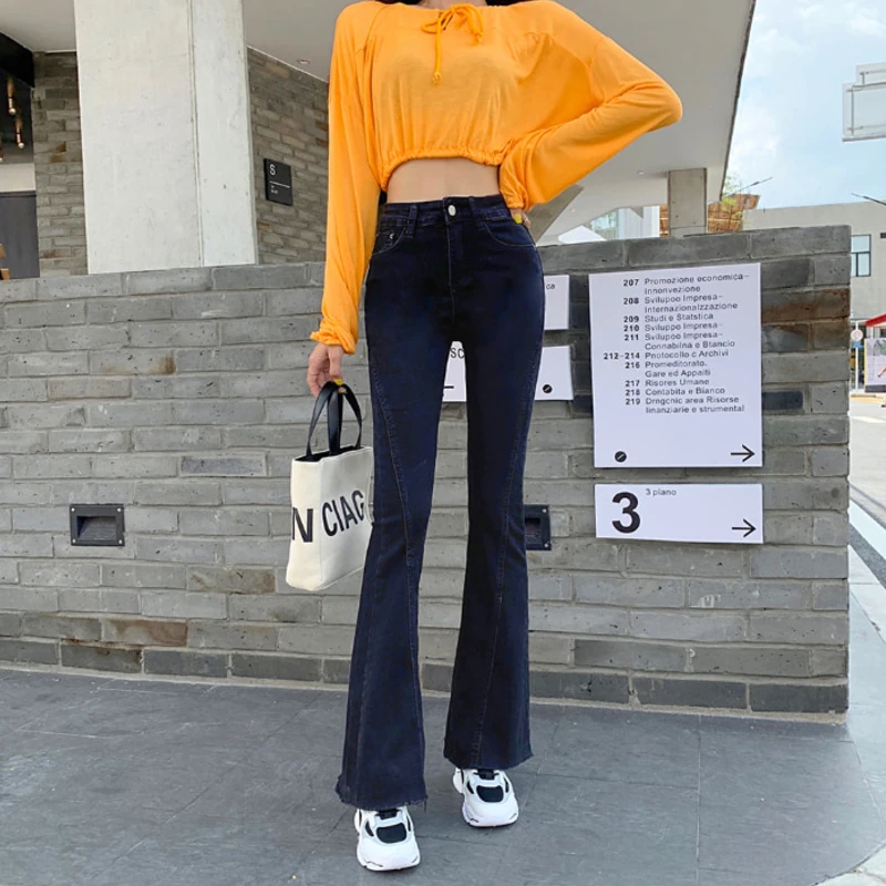 Джинсы-клеш Женские, с высокой талией, на весну и осень