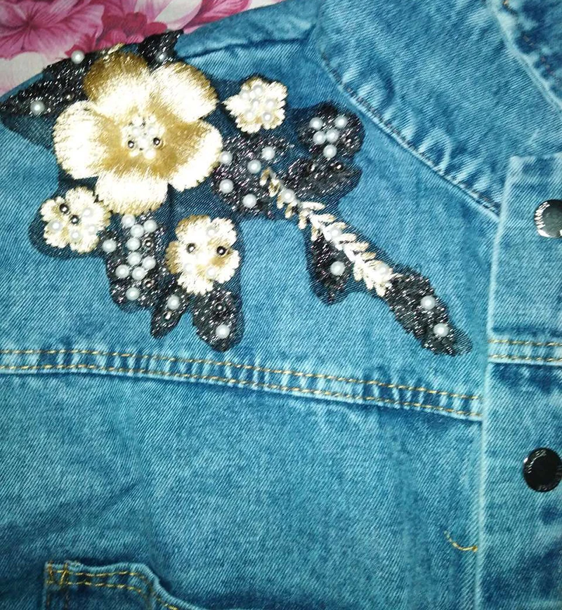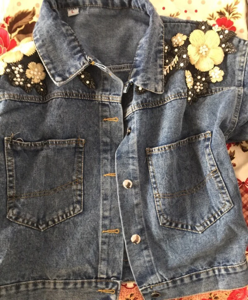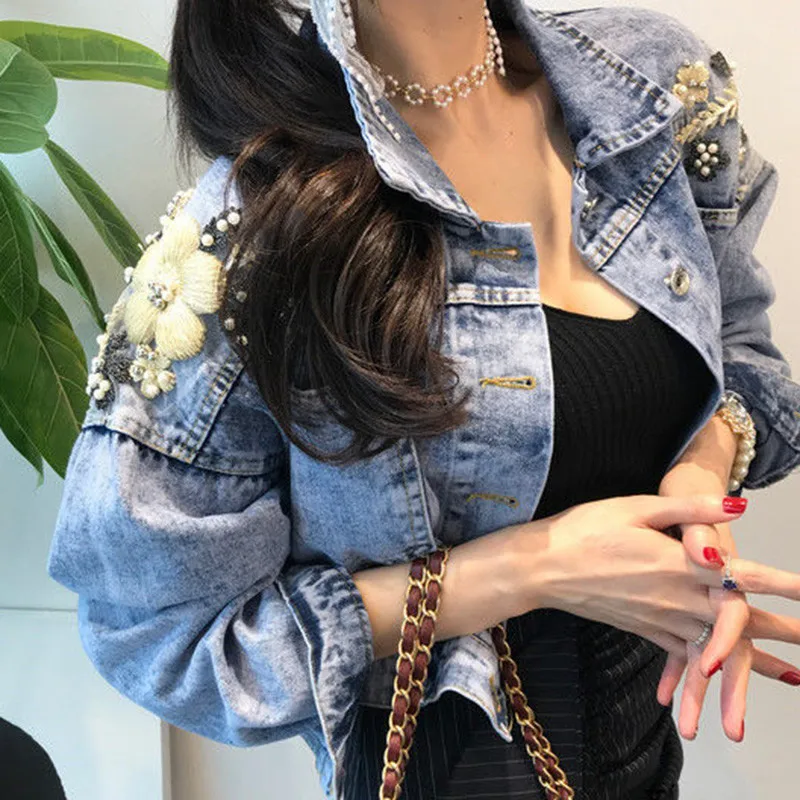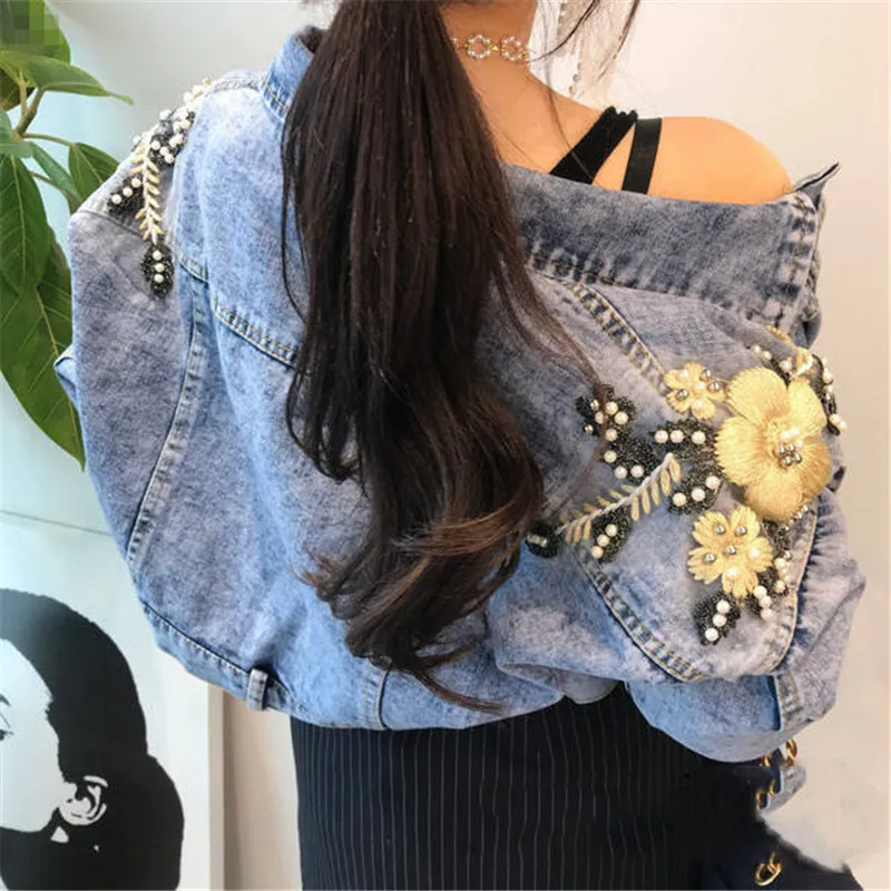 Женская короткая джинсовая куртка, джинсовая куртка с вышивкой бабочек, жемчужин, бисером, длинным рукавом, 2021