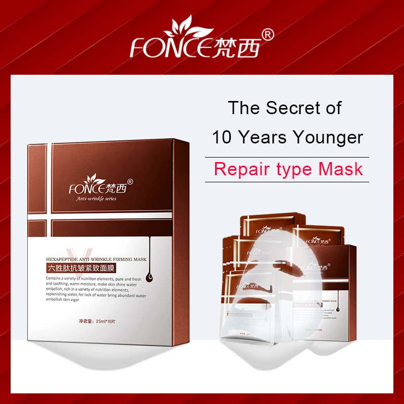 10 шт., Увлажняющая восстанавливающая маска для лица, 6 пептидов