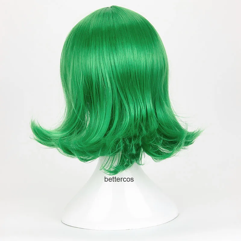 Парик для косплея, термостойкие Зеленые Короткие вьющиеся синтетические волосы с промежуткой из фильма, с отворотом, с шапочкой