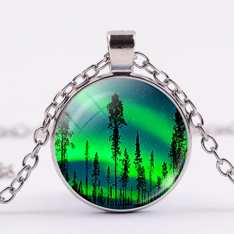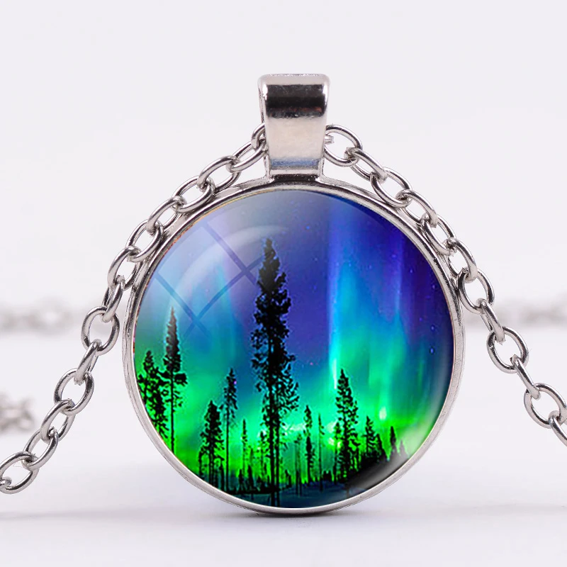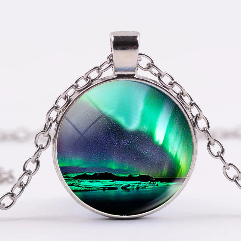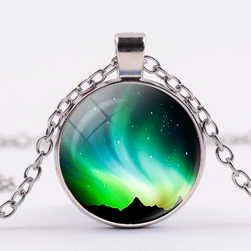 Зеленое ожерелье Северное Сияние, Очаровательное ожерелье Aurora Borealis, декоративный стеклянный кулон, галактика, Вселенная, ручная работа, искусство, модные украшения