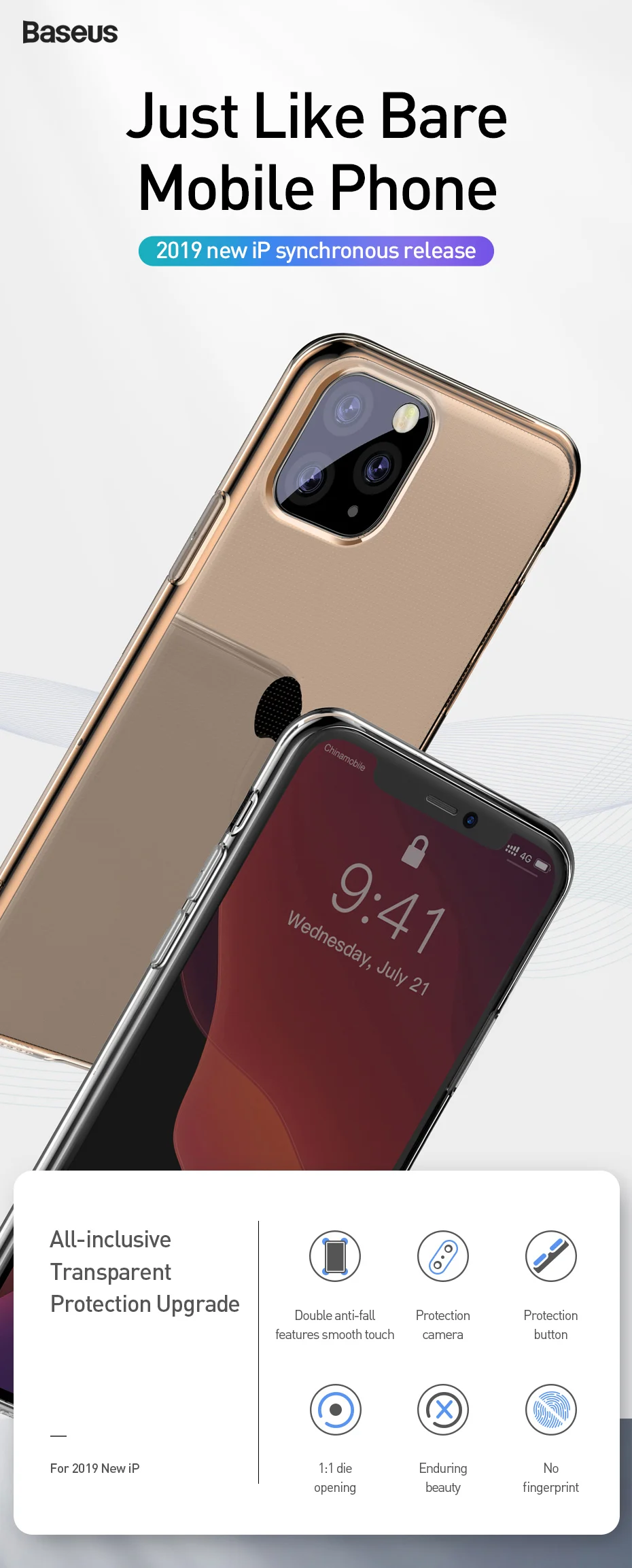 Чехол Baseus прозрачный для iPhone 11, Мягкий Силиконовый ТПУ Ультратонкий Мягкий защитный чехол для телефона iPhone 11 Pro XR Xs Max