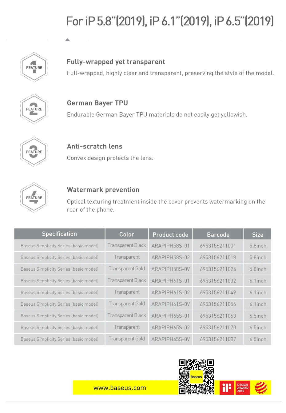 Suitable foriP 5.8 inch (2019)/iP 6.1 inch(2019)/iP 6.5 inch (2019)