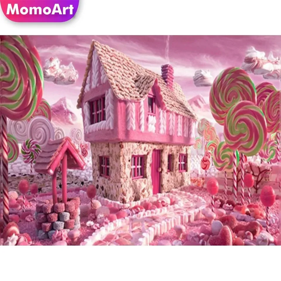 Набор для алмазной вышивки MomoArt, полноразмерная паста, 5D Вышивка крестиком из смолы, мультяшный домик для конфет, подарок для детей