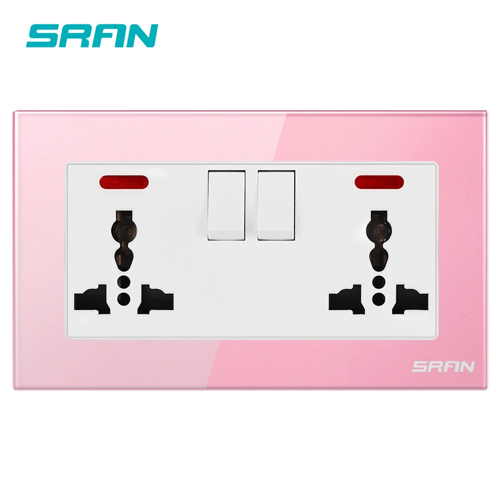 SRAN Универсальный светильник с 3 отверстиями, настенный выключатель, розетка из закаленного стекла, материал панели 146*86 мм, бытовая розетка