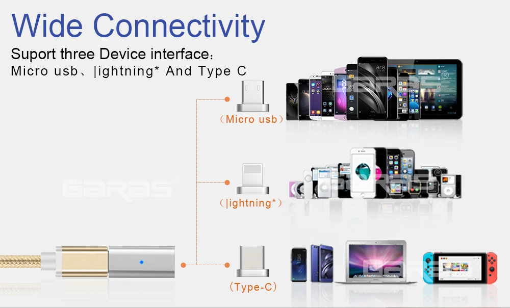 Магнитный адаптер Garas Micro USB для Android, возобновляемый кабель USB Type C, кабель для быстрой зарядки Micro USB мобильный телефон
