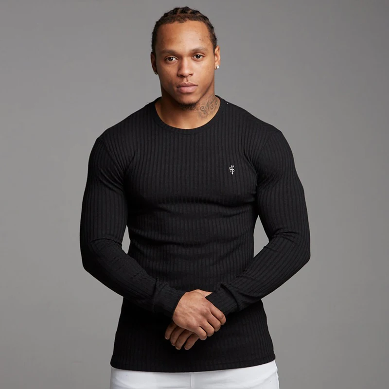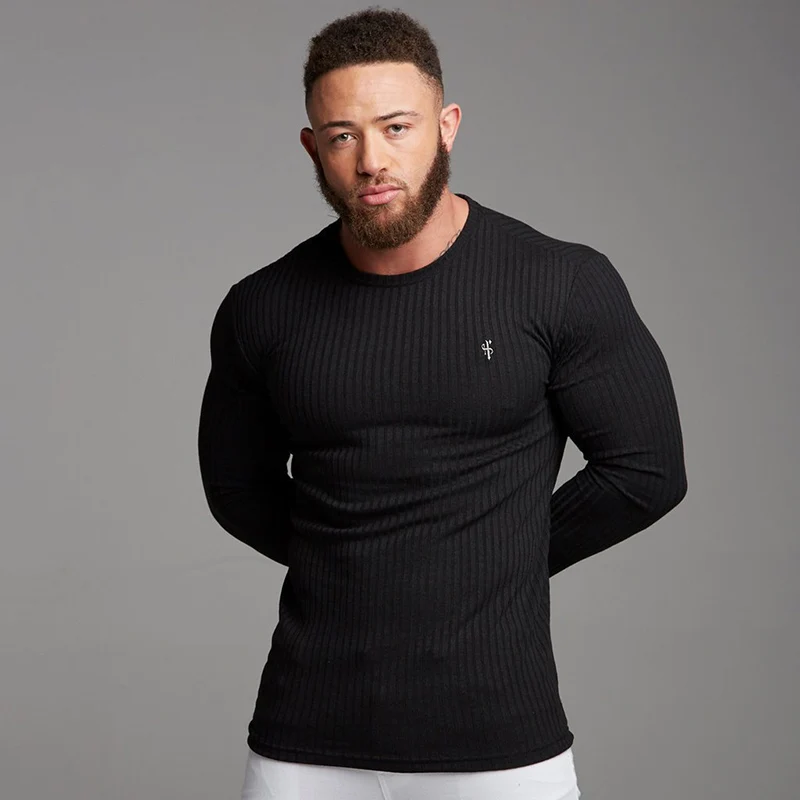 Мужская футболка с длинным рукавом для бега и фитнеса