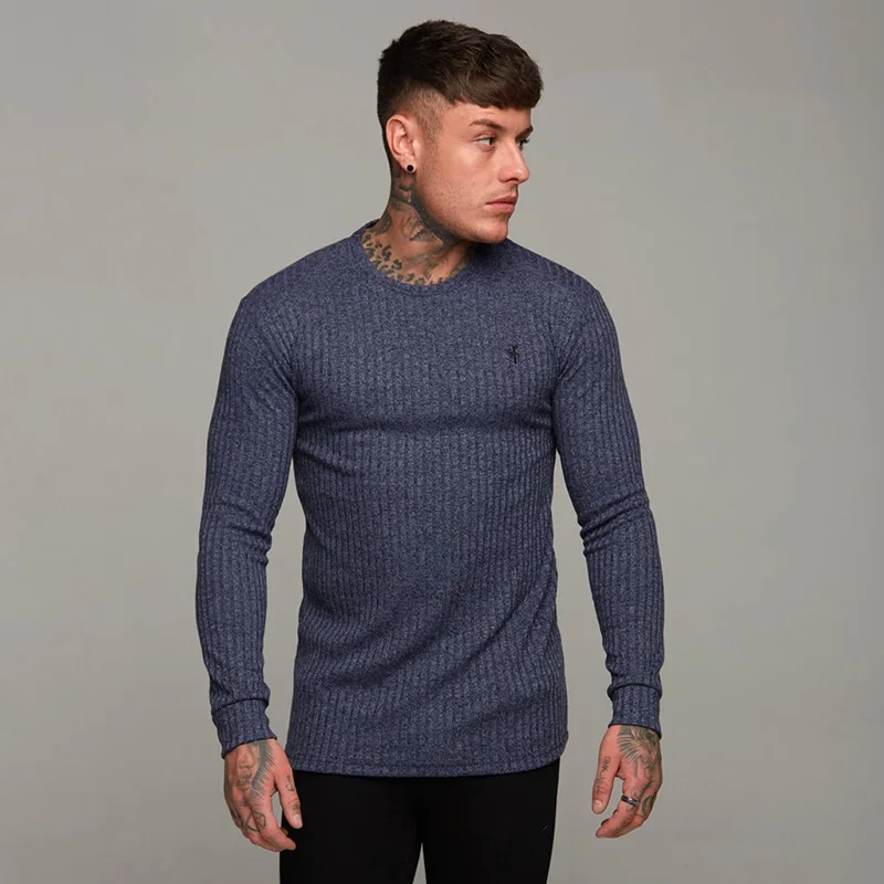 Свитер мужской осенний, тонкий, с длинным рукавом и круглым вырезом
