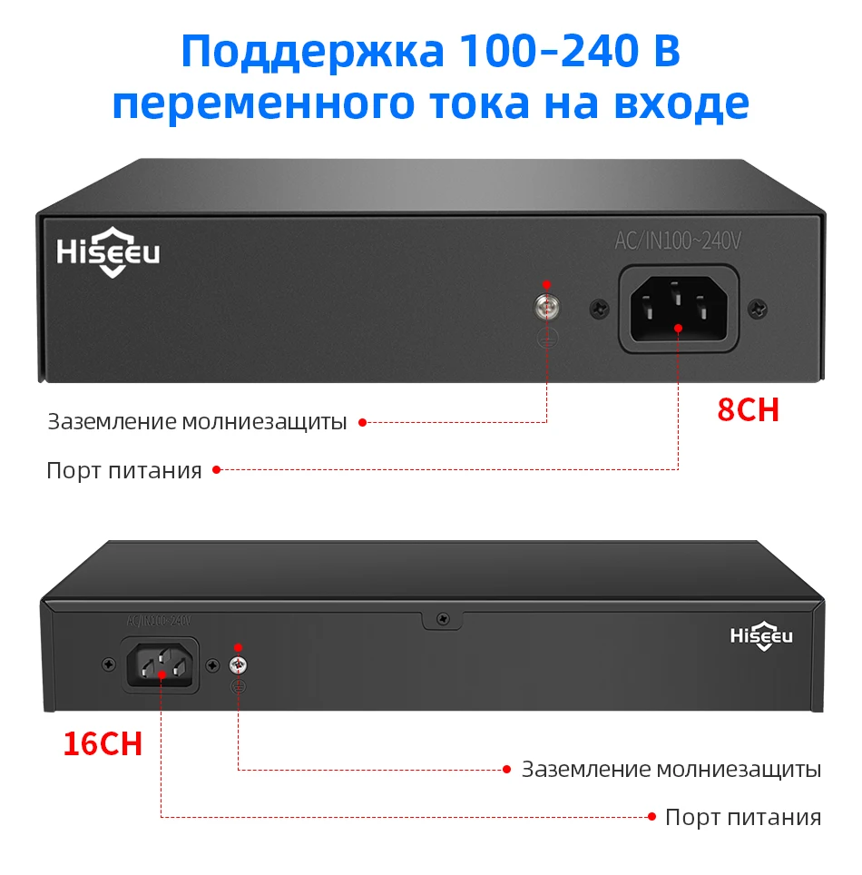 Hiseeu 48 В 816 портов POE коммутатор Ethernet 10100 Мбитс IEEE 802,3 afat для ip-камерыкамера видеонаблюдения системы безопасности камера системаБеспроводная AP ft
