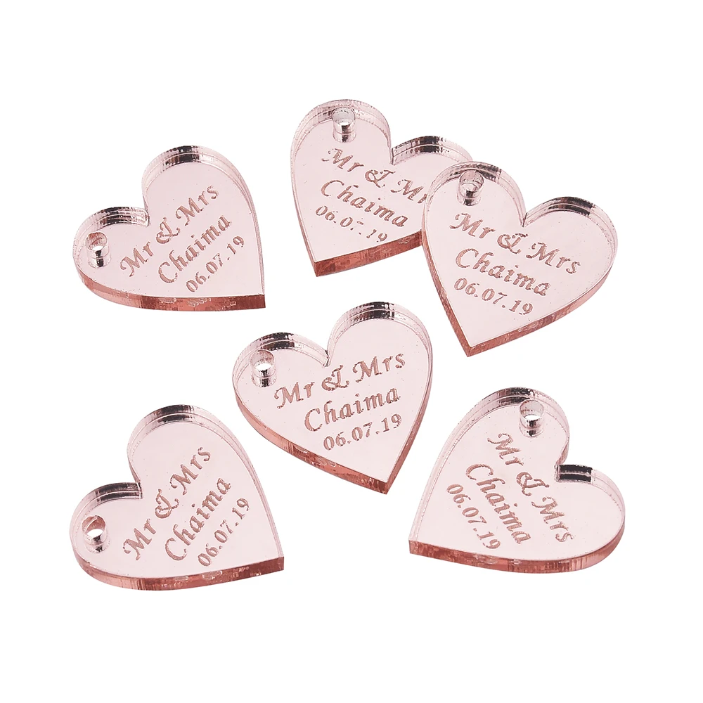20 шт. гравированное зеркало с индивидуальным дизайном, свадебное украшение в виде сердца, розовое золото