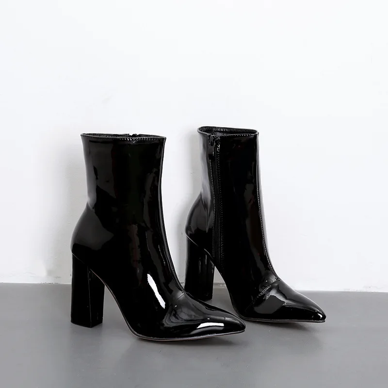 Женские ботильоны из лакированной кожи, с острым носком, на квадрат...