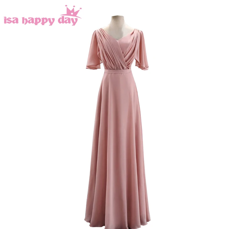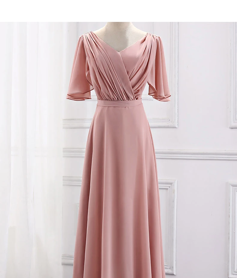 2020 винтажные размера плюс Румяна Платья для подружек невесты с V-образным вырезом Вечерние Платье Плиссированное шифоновое платье для подружек невесты для женщин W4302