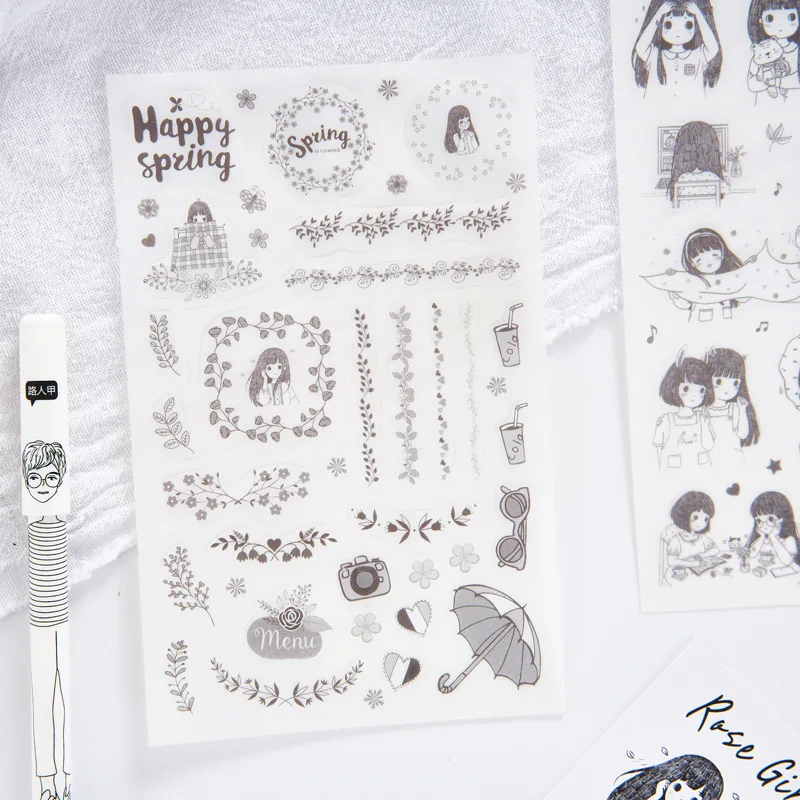6 цветов, Ежедневная жизнь для девочек, Декоративные Канцелярские наклейки, набор для скрапбукинга, сделай сам, дневник, альбом, Стик, этикетка